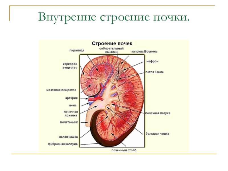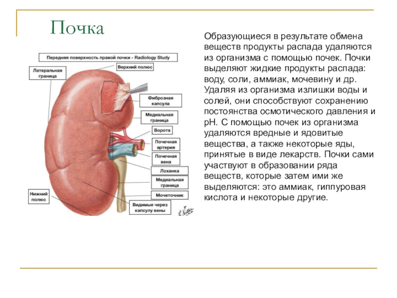 ПочкаОбразующиеся в результате обмена веществ продукты распада удаляются из организма с помощью почек. Почки