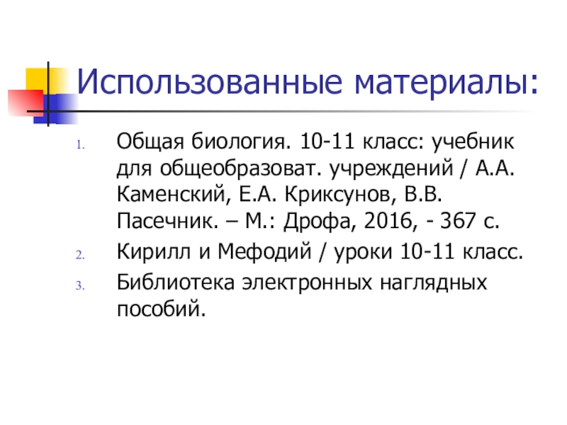 Каменский, Е.А. Криксунов, В.В. Пасечник. – М.: Дрофа, 2016, - 367 с.