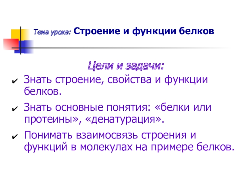 Слайд 2Тема урока: Строение и функции белков