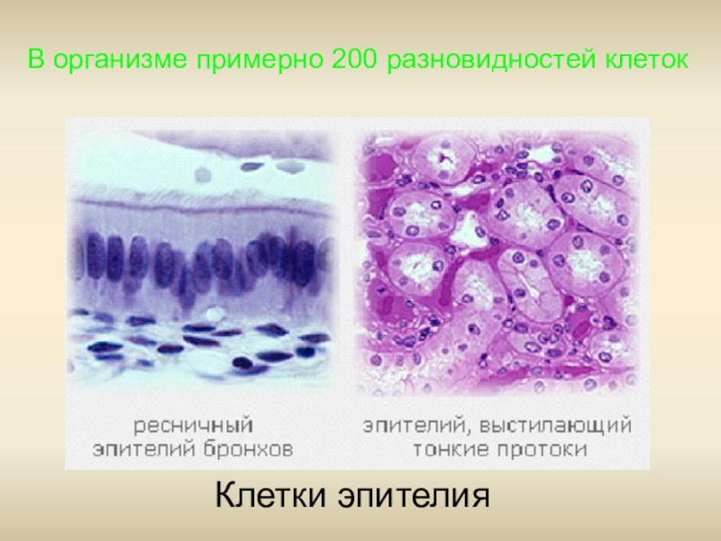 В организме примерно 200 разновидностей клетокКлетки эпителия