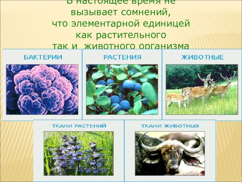 В настоящее время не вызывает сомнений, что элементарной единицей как растительного так и животного организма является клетка