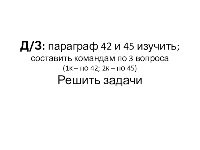 Слайд 12Д/З: параграф 42 и 45 изучить; составить командам по 3 вопроса