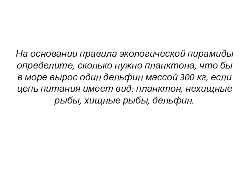 На основании правила экологической пирамиды определите, сколько нужно планктона, что бы в море вырос один дельфин массой