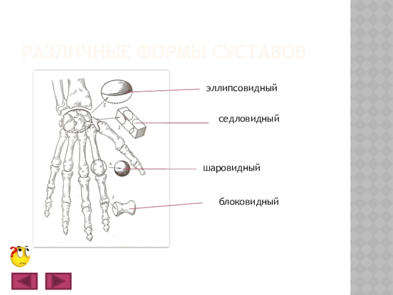 РАЗЛИЧНЫЕ ФОРМЫ СУСТАВОВэллипсовидныйседловидныйшаровидныйблоковидный