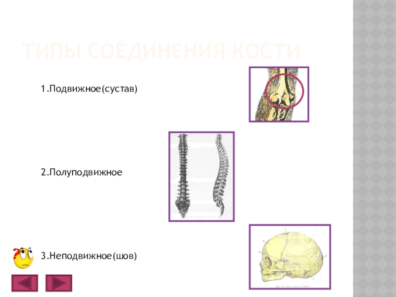 Слайд 4ТИПЫ СОЕДИНЕНИЯ КОСТИ