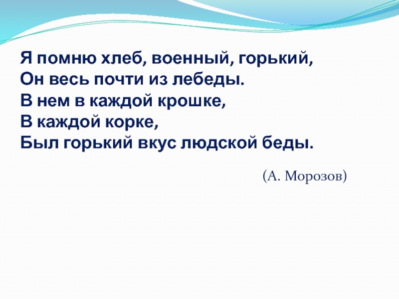Слайд 57Я помню хлеб, военный, горький,