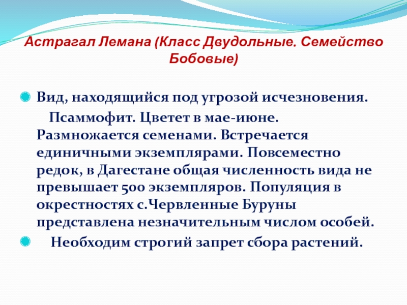 Слайд 10Астрагал Лемана (Класс Двудольные. Семейство Бобовые)