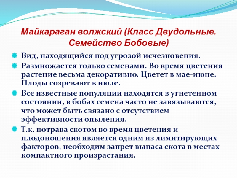 Слайд 15Майкараган волжский (Класс Двудольные.