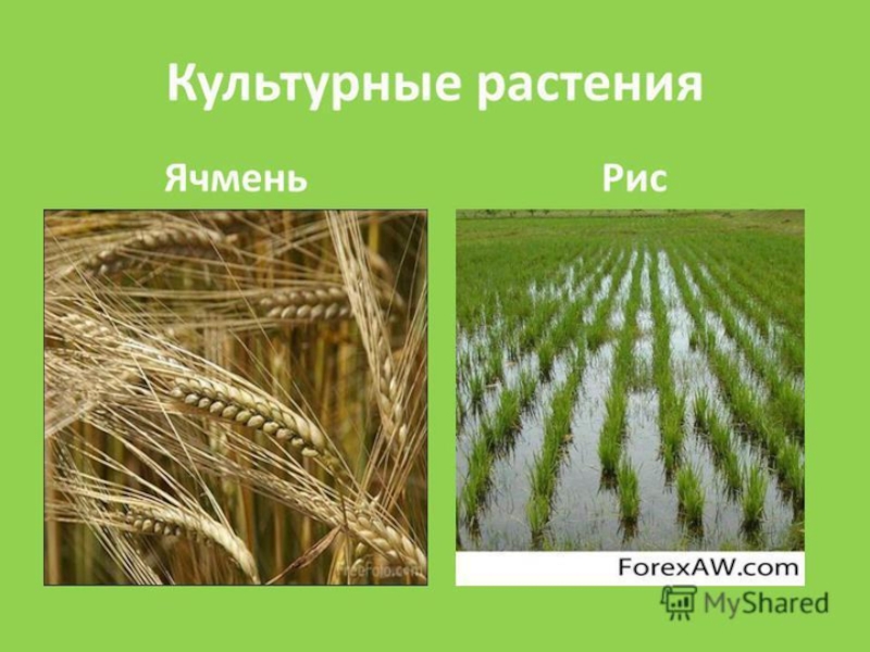 Кукуруза, ячмень, яблоня, просо, рис.