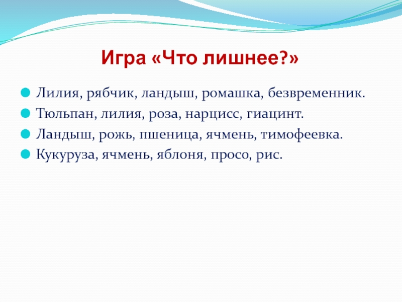 Слайд 62Игра «Что лишнее?»