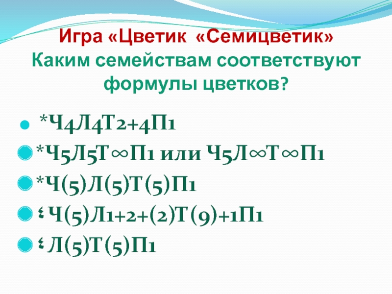 Каким семействам соответствуют формулы цветков?