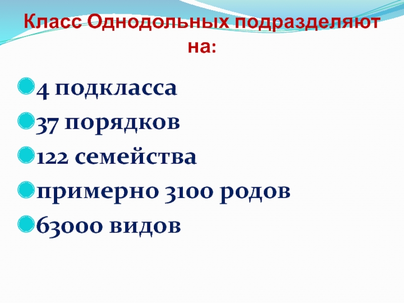Слайд 18Класс Однодольных подразделяют на: