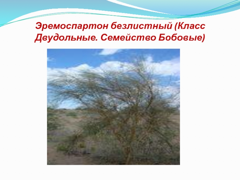 Слайд 17Эремоспартон безлистный (Класс Двудольные. Семейство Бобовые)