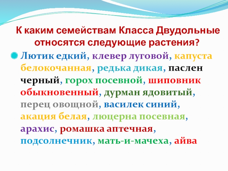 Слайд 3К каким семействам Класса Двудольные относятся следующие растения?