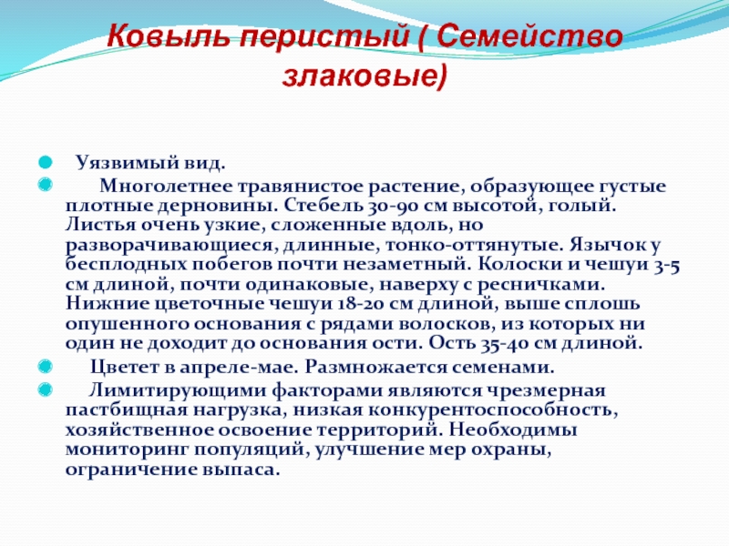 Слайд 48Ковыль перистый ( Семейство злаковые)