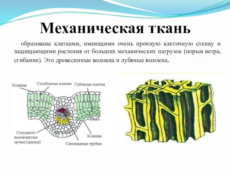 Механическая ткань образована клетками, имеющими очень прочную клеточную стенку и защищающими растения от больших механических нагрузок (порыв