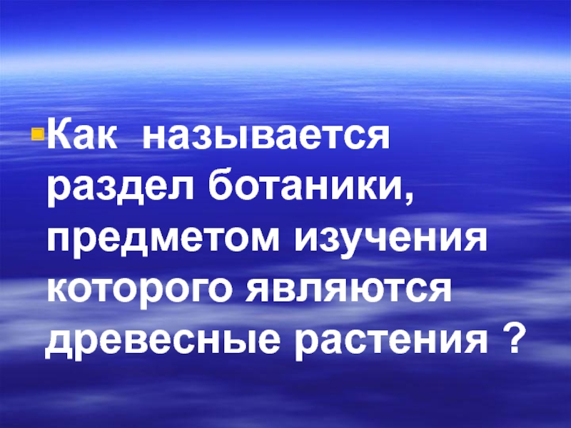 Слайд 43Как называется раздел ботаники, предметом изучения которого являются древесные растения ?