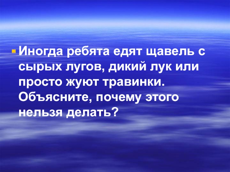 Слайд 16Иногда ребята едят щавель с сырых лугов, дикий лук или просто