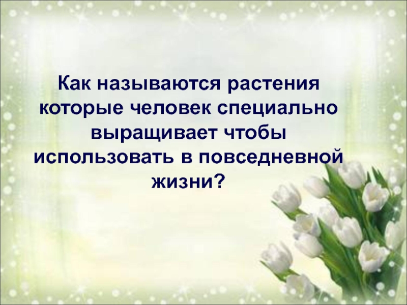 Слайд 5Как называются растения которые человек специально выращивает чтобы использовать в повседневной