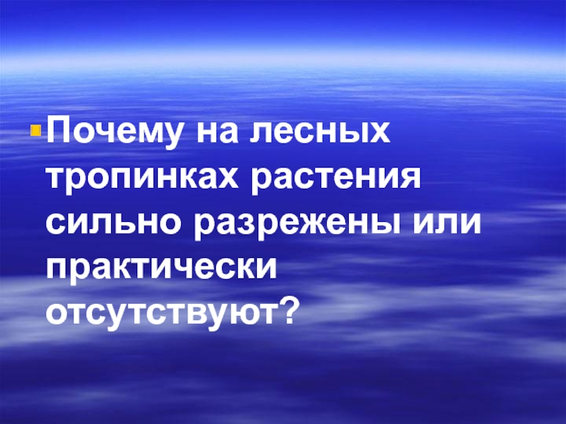 Слайд 31Почему на лесных тропинках растения сильно разрежены или практически отсутствуют?