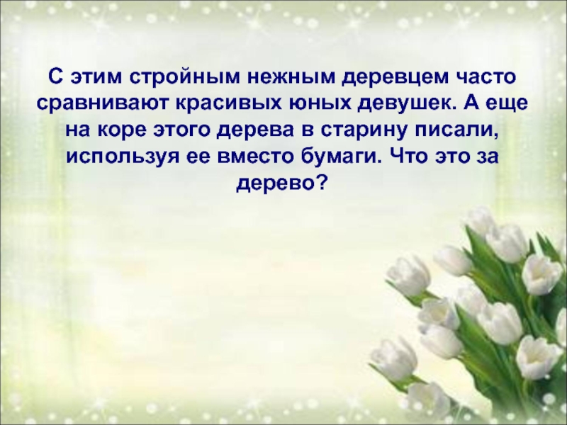 Слайд 19С этим стройным нежным деревцем часто сравнивают красивых юных девушек. А