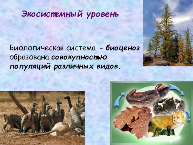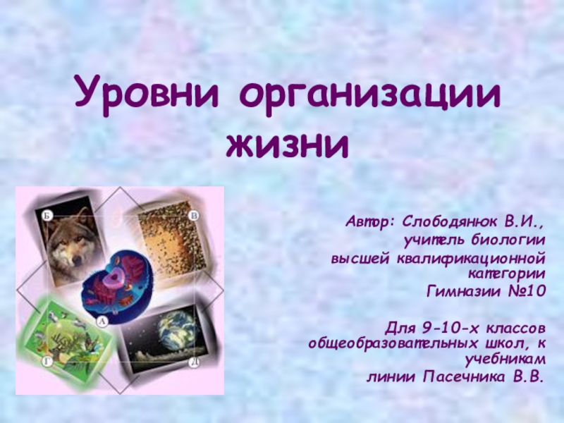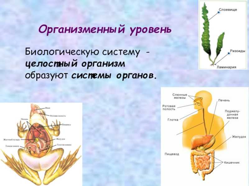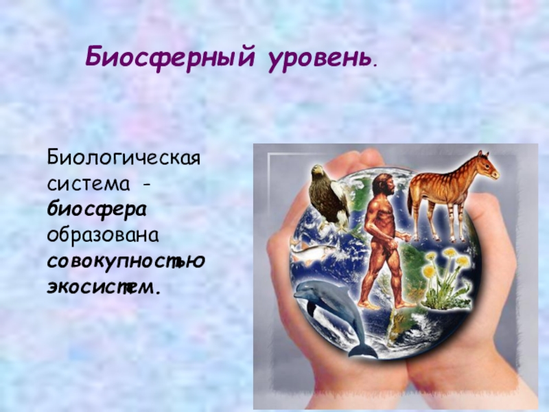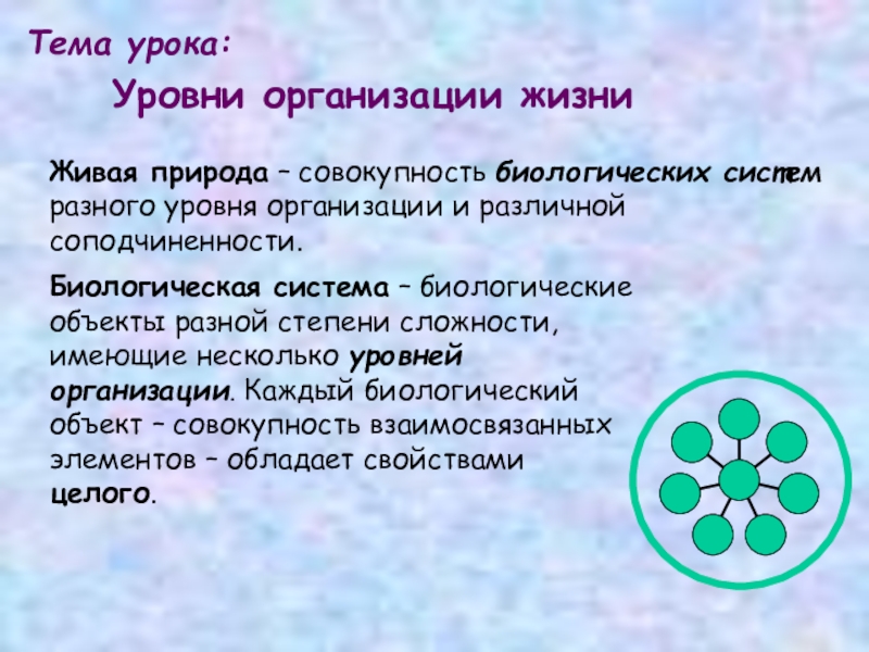 Биологическая система – биологические объекты разной степени сложности, имеющие несколько уровней организации. Каждый биологический объект – совокупность взаимосвязанных элементов – обладает свойствами целого.