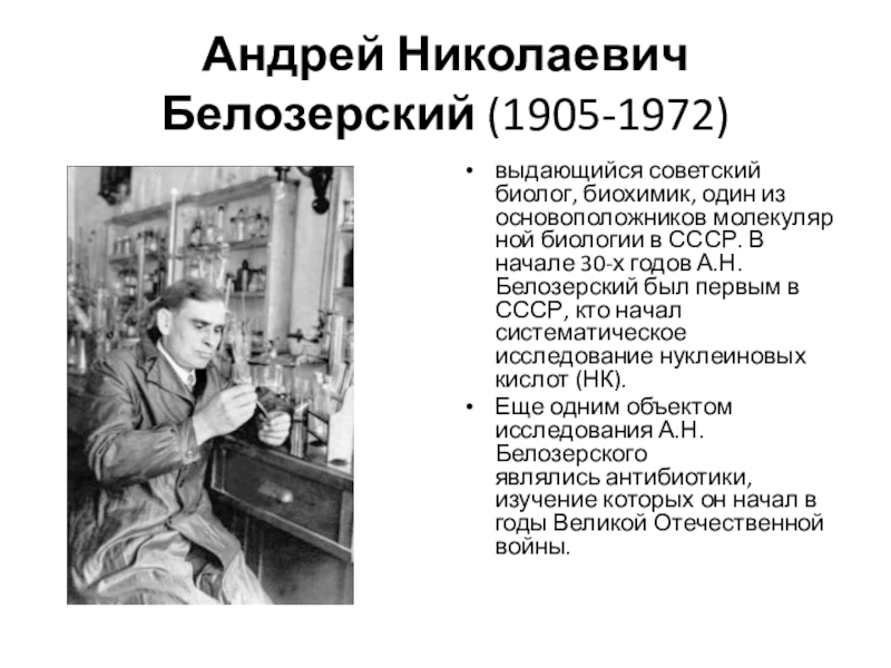 Слайд 21Андрей Николаевич Белозерский (1905-1972)