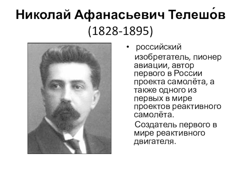 в России проекта самолёта, а также одного из первых в мире проектов реактивного самолёта.