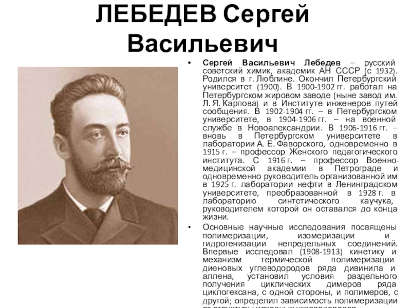 Сергей Васильевич Лебедев – русский советский химик, академик АН