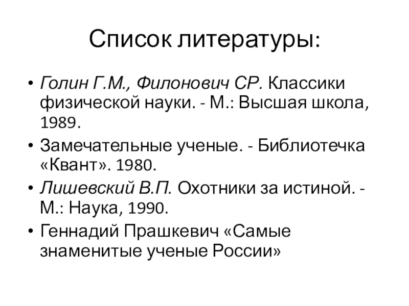 Лишевский В.П. Охотники за истиной. - М.: Наука, 1990.