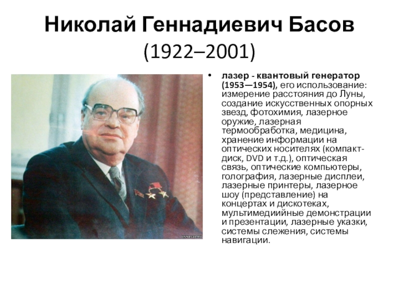 лазер - квантовый генератор (1953—1954), его использование: измерение расстояния