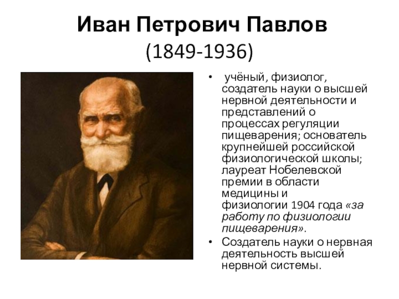 учёный, физиолог, создатель науки о высшей нервной деятельности и представлений о