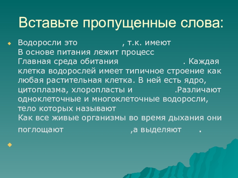 Вставьте пропущенные слова: