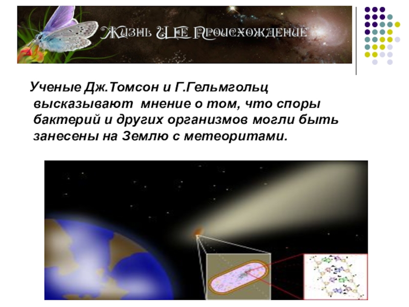 споры бактерий и других организмов могли быть занесены на Землю с метеоритами.