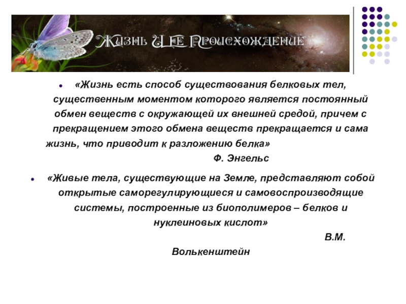«Жизнь есть способ существования белковых тел, существенным моментом