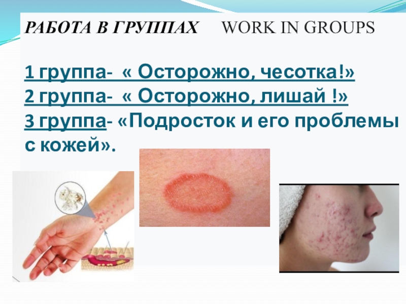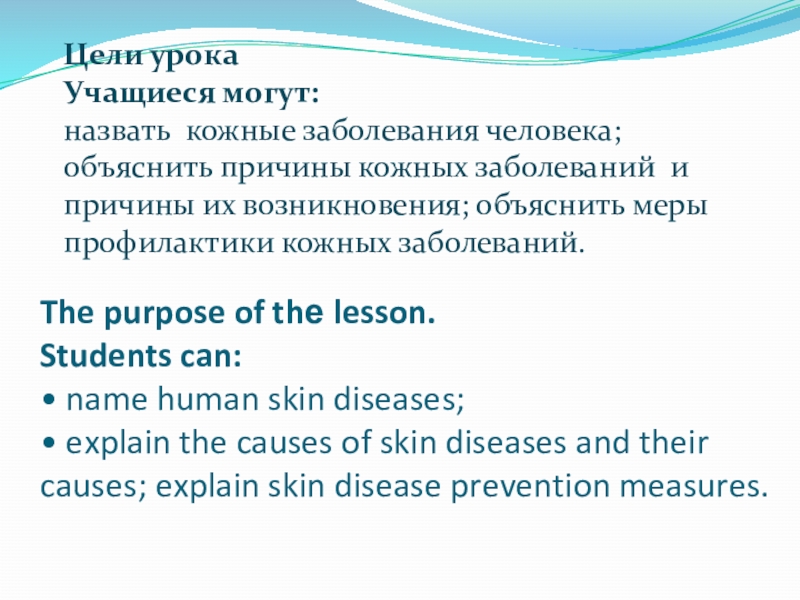объяснить причины кожных заболеваний и причины их возникновения; объяснить меры профилактики кожных заболеваний.
