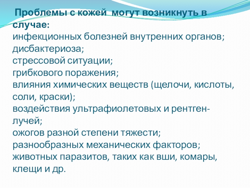 Слайд 7 Проблемы с кожей могут возникнуть в случае: