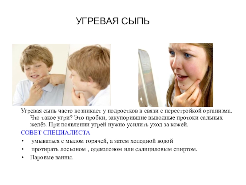 1 группа: «На приеме у косметолога» Угри и их профилактика. Уход за кожей лица.