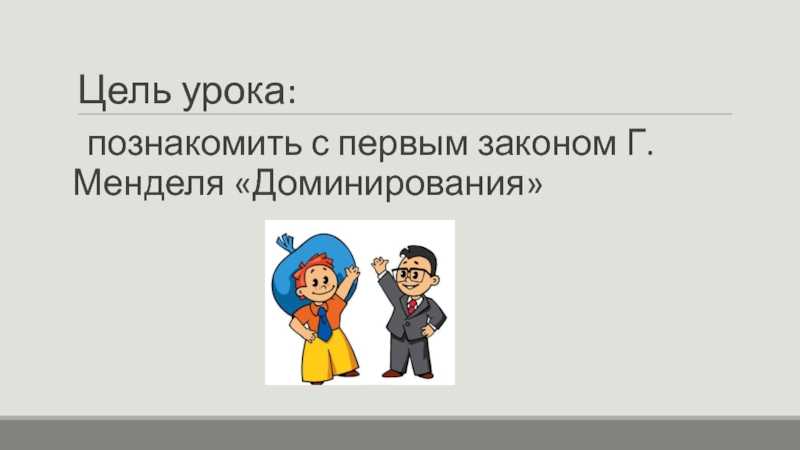 Цель урока:  познакомить с первым законом Г. Менделя «Доминирования»