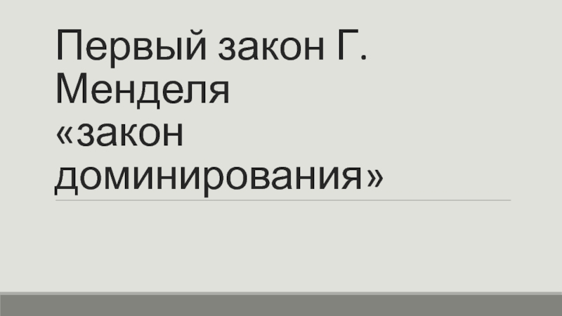 Слайд 1Первый закон Г. Менделя «закон доминирования»