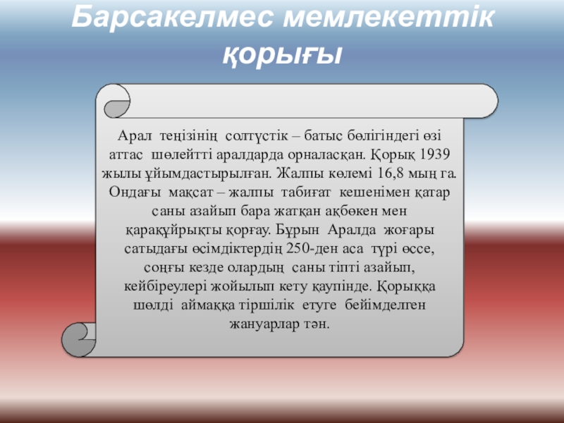 Слайд 20Барсакелмес мемлекеттік қорығы