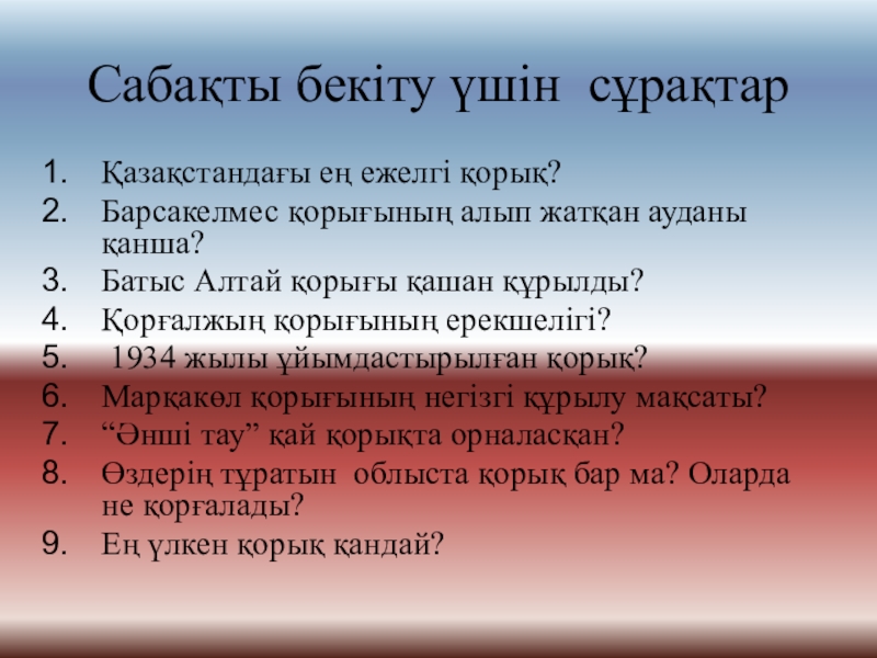 Слайд 40Сабақты бекіту үшін сұрақтар