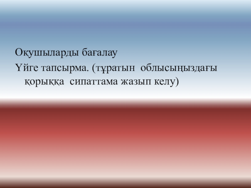 Үйге тапсырма. (тұратын облысыңыздағы қорыққа сипаттама жазып келу)