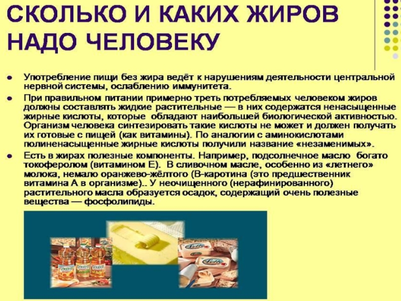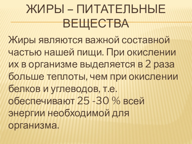 Жиры – питательные веществаЖиры являются важной составной частью нашей пищи. При окислении их в организме выделяется в