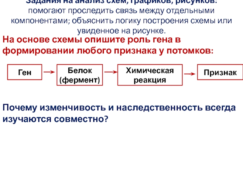 На основе схемы опишите роль гена в формировании любого признака у потомков: