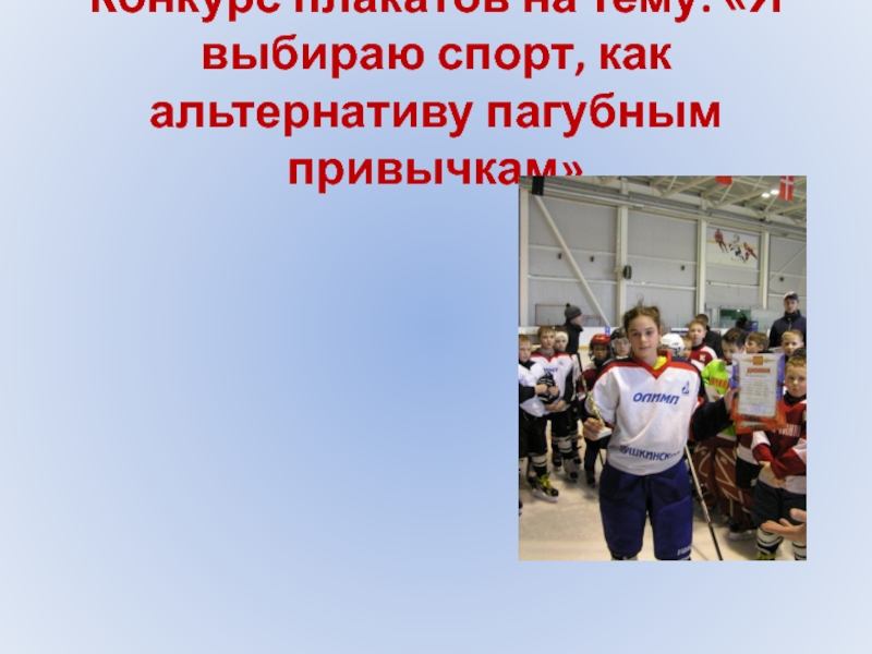 Слайд 19Конкурс плакатов на тему: «Я выбираю спорт, как альтернативу пагубным привычкам»