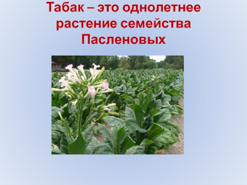 Слайд 12Табак – это однолетнее растение семейства Пасленовых