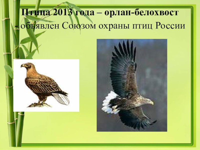 Слайд 15Птица 2013 года – орлан-белохвост - объявлен Союзом охраны птиц России