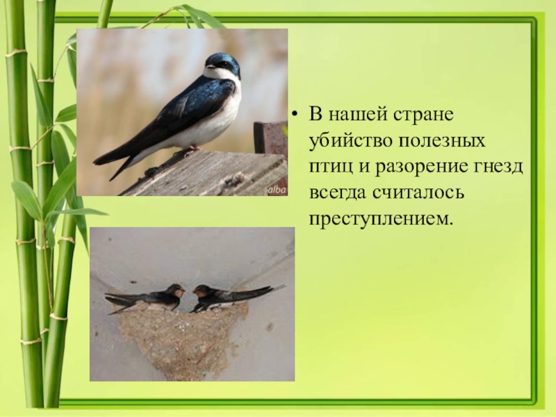 В нашей стране убийство полезных птиц и разорение гнезд всегда считалось