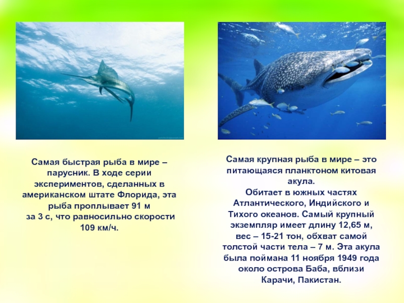 Самая крупная рыба в мире – это питающаяся планктоном китовая акула.
